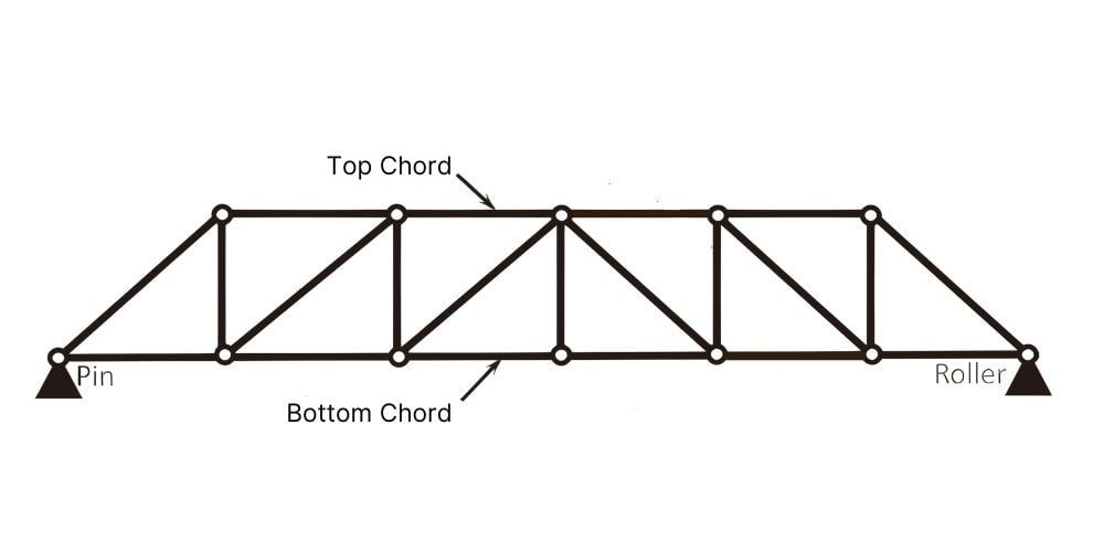 A simple roof truss relies on basic triangles. Two top chords meet at the ridge, a straight bottom chord ties them together, and one or two webs share the load. For spans under 6 m (about 20 ft) this king-post or queen-post shape is enough.